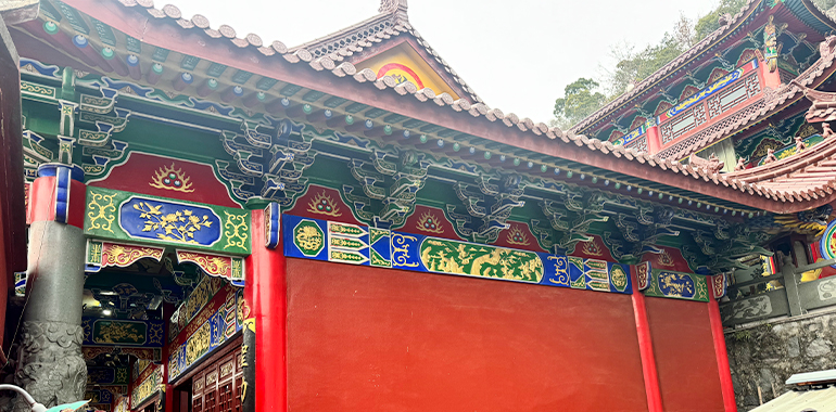 忠烈殿的建筑规制尽显“忠勇”气韵,始建于明清之际,历经数百年修缮,仍保留着江南古建筑的古朴雄浑。殿宇坐北朝南,飞檐翘角如利剑凌云,雕梁画栋间嵌刻着“穆桂英挂帅”“大破天门阵”等经典场景,木雕线条遒劲有力,彩绘色泽沉稳庄重,既彰显了道教殿宇的庄严神圣,又融入了杨家将传说的英雄气概。殿内梁柱挺拔,丹陛宽阔,香火缭绕中,诸神像或披甲执锐,或英姿飒爽,凛然之气扑面而来,仿佛穿越千年时空,重现了北宋杨家将戍边卫国的壮阔图景。
